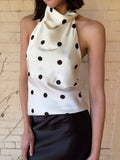 Meet the Adriana Halter Top, a on trend cream with black polka dot, featuring a high-neck that drapes beautifully and an open back which completes the look with a touch of feminine charm. Pair the top with your go to jeans, skirts or shorts, or as picture with with a beautiful silky style maxi skirt.