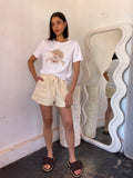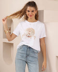 An everyday essential. The Amara Tee is a boxy, casual style featuring a shell and mermaid print. It's your go-to for effortless outfitting. Wear it with denim, skirts or tailored trousers. This tee plays well with everything.