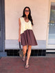 The Isadora Mini Dress is a style that screams elegance and class, by showcasing a fitted shirred silhouette waist and bust, finished with a mini full gathered skirt and adjustable straps. It's the perfect dress for any event.
