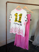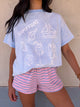 An everyday essential, the Aloha Tee is an oversized style tee, featuring a hawaiian soft pink floral print. It's your go-to top for effortless styling. Wear it with denim, skirts or tailored trousers. This tee plays well with everything.