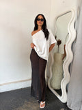 Effortlessly chic and perfect for warm-weather styling, this two-piece set features a relaxed striped tee paired with a flowy sheer maxi skirt. The soft, oversized tee brings a casual balance to the delicate, semi-sheer skirt adorned with playful polka dots. Lightweight, comfortable, and easy to style, wear it together for an instant outfit or mix and match with your wardrobe staples.Perfect for everyday wear, brunch dates, beach outings, and effortless summer looks.