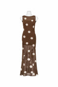 Meet the Ricky Maxi Dress, an elegant and effortless playful maxi that features a gorgeous timeless chocolate and cream polka dot pattern. This slip style maxi features a low draped back, a high neckline and a fitted strapless slip underneath the soft mesh sheer. The ultimate summer season maxi for any event.