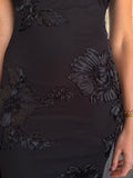Meet the Yasmin Dress, a gorgeous figure hugging maxi dress in a deep chocolate brown finished with delicate foil lace floral embroidery. Featuring a mesh stretching material for ultimate comfort and easy thin adjustable straps for classic touch. Perfect for any event events.