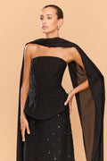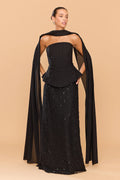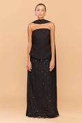 The Amethyst Beaded Skirt is a statement piece of refined elegance and intricate craftsmanship. Hand-embellished with tonal beads in a delicate diamond lattice pattern, this skirt shimmers softly with every movement, exuding quiet luxury. The full-length silhouette offers graceful fluidity. Pair with the Cleo Top and Scarf or your favourite Tuxedo Blazer for the ultimate look.