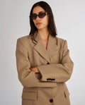 A statement silhouette for the modern muse. The Freddie reimagines the classic frame with a soft hexagonal shape and bevelled edges that catch the light from every angle. Bespoke organic L gold detailing at the temples adds a touch of polish, making this style feel both directional and refined.