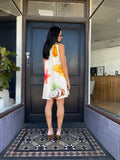Meet the Bahama Mini Dress, a sweet and effortless mini dress that features a babydoll relaxed fit. Featuring a ruched scoop neckline for added edge texture and in a floral feminine print. It's the perfect summer outfit.