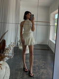 The Talulah Mini Dress is the perfect party dress, in a delicate ivory shine that screams effortless elegance. By showcasing a tie-up halter neckline, open back and a low waistband finished with a layered flowy skirt, it's the perfect dress for the summer season for goddess energy.