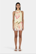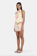 The Louisa Mini Dress is a fitted mini dress featuring a high cowl neck and a backless design with an adjustable back strap for a perfect fit. Fully lined for comfort, it has an invisible zipper at the centre back skirt for a seamless finish.