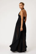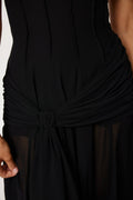 The Rheanna is the ultimate cool girl look. Cut from our lightweight georgette, this dress perfectly hugs the waist before flaring through the hem. The dress showcases an overlay panel which drapes around the hips and is fixed at the front creating a hanging sash.