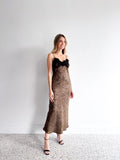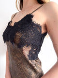 Meet the Romina Slip Dress, a multi brown paisley vintage inspired slip style midi dress that featuring a delicate v-neckline in black lace detail and adjustable thin straps. It's a classic style that is perfect for the summer season and easy to dress up or down.