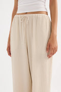 The Palma Pant is made from a lightweight textured fabric which has a dry hand feel. The silhouette is relaxed with a wide full length leg. Features include an elasticated waistband with a drawcord and side seam pockets. These pants are fully lined.