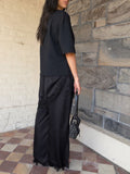 Meet the Noah Tee a relaxed-fit tee featuring an asymmetrical bottom in satin material and lace finish. This tee brings a fun, carefree vibe with a chic-inspired feel designed for effortless day-to-night dressing.