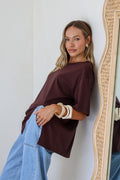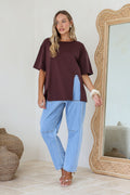 The Best Basic Top by BTL is a wardrobe staple. With classic tee features in a longline length, a deep chocolate brown colour and an opening to the one side perfect for styling.