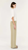 The Dion Sage Relaxed Track Pant is an easy, relaxed style designed for all-day comfort with a refined edge. Featuring an elasticated waistband and wide-leg silhouette, these pants fall fluidly through the leg for an effortless fit. Finished with a subtle contrast side stripe, they offer a modern take on casual dressing. Wear with the Lune Crop Tee or a fitted tank for a clean, contemporary look.