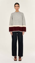 The Elva Grey Raglan Heavy Knit Jumper is a cosy statement knit designed with relaxed proportions and bold contrast detailing for a modern, elevated feel. Crafted from a soft, mid-weight knit, it features a classic crew neckline, raglan sleeves and wide Color block bands at the hem and cuffs for a striking finish.
