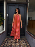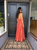 Meet the Belle Maxi Dress, offering the perfect balance of comfort and style. This piece maintains a sleek, classic look with a relaxed fit, a sophisticated halter neckline, and an eye-catching knot detail. The multi-pink print and flowy maxi length ensure you stay effortlessly chic all summer long, perfect for the festive season.