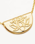 The signature Lotus Necklace features the Lotus Flower of new beginnings. The lotus begins its life as a bud emerging from the depths of the muddy pond, breaking free, and blossoming into a beautiful and pure flower. This journey is much like a person's path to self-discovery. Wear our Lotus Necklace as a symbol of new beginnings.