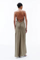 The Juno Bodice is made from a lightweight viscose linen blend fabric which has a soft hand feel and a subtle texture. The silhouette is a strapless fitted bodice with length finishing below the hip.. Features include shirring at the back, invisible zipper, gathers through waist, side split and asymmetrical hem.