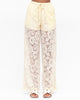 Get ready to wow in our new Cream colour Dolce Pant. These stunning, flare cute pants feature a sexy lace design that pairs perfectly with an oversize blazer or tee for an elegant and alluring look. The elastic waistband provides a comfortable fit, while the slight flare leg adds a touch of flair. Don't miss out on this amazing addition to your wardrobe.