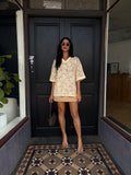 Meet the Axel Lace Tee by Peach & Parla. This chic lace tee featured a v-neckline with a thick ribbed finishing on the neck and sleeves, in an oversized fit it's the perfect top to elevate your outfit for casual to dressy.