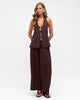 Meet the Gabriella Top, featuring a halter vest style top with an open v-neckline that drapes beautifully and is finished with a gold shell feature which completes the look with a touch of feminine charm. Pair the vest with the matching pant to complete the outfit.