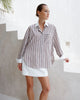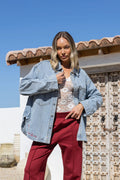 This Limited Edition Denim Shirt by Peach & Parla is an oversized slouch fit with embroidered front pocket and branding script. A new wardrobe staple for the trans-seasonal weather.