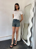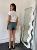 The Venice Short in Hilton is a high rise, loose fitting short. Made with comfort rigid denim.