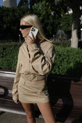 The Nazra Mini Skirt is an A-line mini skirt that is designed to sit mid-rise and is fully lined. The skirt has a size zip entry for a seamless silhouette and back pockets with button detailing. Pair with the matching Marquez bomber for a cool tonal set.