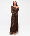 Unleash your street style with this gorgeous statement midi skirt, featuring a playful chocolate with cream polka dot print in a delicate mesh material and finished with a lined brown skirt for chic look. The Sofia Skirt is an easy slip on style, in a flowy midi length and a ruched gathering waistline for a flattering and sleek finish.