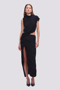 The KayKay Draped Cut-Out Asymmetrical Convertible Maxi Dress to Top and Skirt Set blends modern design with sensual edge. Featuring cut-out detailing, ruched fabric, and a breathable mesh finish, it enhances the figure with subtle stretch.