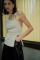 The Interweave Drape Maxi Dress in Cream & Black features a fitted tank design with a straight-cut skirt. An asymmetric neckline and twisted waist cut-out provide a distinctive flair, while the gathered right side adds a relaxed feel to the sleek silhouette.