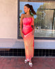 The Rose Dress is a gorgeous red mesh midi style dress that gives a stunning silhouette shape. Featuring a high neckline and sleeveless cut this dress is a timeless and classic style for any event.