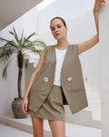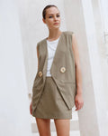 The Apollo Mini Skirt paired with its matching vest creates a super edgy work-to-wine outfit. Playful and stylish, this set effortlessly transitions from professional meetings to evening fun, making your wardrobe both versatile and bold.