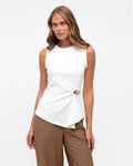 Meet the Ellie Ribbed Top, a statement top that is a wardrobe staple. This tank features a classic rounded neckline, short tank sleeves and is finished with a gold buckle with draped gathering details. It's an elevated look to a basic tank, pair with any bottoms to elevate your outfit.