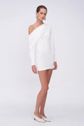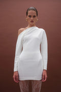 The Esme Mini is a study in balance. The asymmetrical neckline gives shoulder, while the long sleeve keeps it grounded. Minimal in shape but architectural in feel, it’s the kind of piece you wear when polish matters more than fuss. Effortless, white, and cut to stand alone.