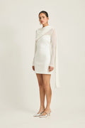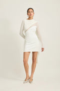 - Right sleeve made from slinky jersey - draping over the shoulder into a shawl scarf detail