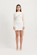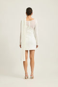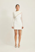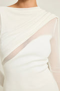 - Remainder of dress is designed in double-bonded crepe stretch fabrication