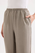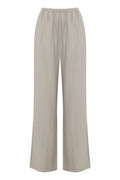 The Juno Pant is made from a lightweight viscose linen blend fabric which has a soft hand feel and a subtle texture. The silhouette is a relaxed wide leg, full length pant. Features include an elasticated waistband, side seam pockets and side slits at hem.