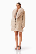 The Keystone Faux Fur Coat in Beige offers a chic and sophisticated approach to cold-weather styling. Perfect for transitioning from day to night, this knee-length faux fur coat features a relaxed fit that complements any outfit, creating a flattering silhouette....