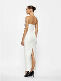 Effortlessly graceful, we introduce the Kiera Dress. Featuring a strapless cut with a plunging neckline, detailed with intricate patterning and accents across the body. Finishing with a flirty and feminine finish with two bows at the bodice. This gown moves with elegance and ease, made with a gorgeous Brocade for understated elegance. Perfect for special celebrations and event dressing.