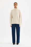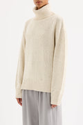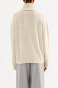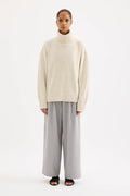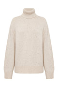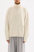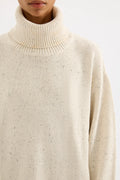 The Lander Turtleneck Knit is made from a cotton blend yarn with a soft hand feel and speckled yarn throughout. The silhouette is relaxed with a dropped shoulder, and length finishing below the hips. Features include fold over turtleneck, ribbed collar, cuff and hem.