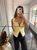 Meet the Lola Ribbed Tank, an effortless and everyday top in a deep chocolate that features a scoop neckline with centre button up opening. It's the perfect versatile top for the summer season.