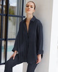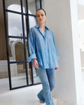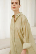 Discover the Goddess Series oversized shirt in luxe semi-sheer fabric, available in fresh pistachio green, ocean blue and classic black shades. Perfect for adding a playful, breezy vibe to your wardrobe.