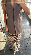The Maeve Vest is a classic style vest top, that features an added belt for a more tailored drawn in waistline for that added chic look. The vest features a collared neckline, two centre button detail, front pockets and more structured look. A perfect wardrobe essential for all year round.