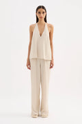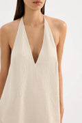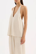 The Palma Halter Top is made from a lightweight textured fabric which has a dry hand feel. The silhouette is a halter neck with an open back finishing at the hip. Features include a low V neckline and thin tie closure. This top is fully lined.