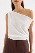 The Paras Knit Top is designed from a soft, lightweight fabrication. The silhouette is a relaxed fit for ease and comfort. This lightweight soft knit features an asymmetric neckline and rib hem.