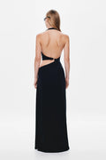 A buttery cupro dress with asymmetric plunge neckline. Accented by metal ring hardware at the midriff creating delicate gathers. The garment boasts an exposed open-back finished with a refined metal ring closure.
