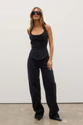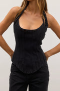 Introducing the Sabine denim corset crafted from a sculpting denim with seam detailing, this halter-style corset is designed to contour the body with a flattering curved hem and defined panel lines. Featuring a low scoop neckline and an exposed metal zip at the back.