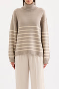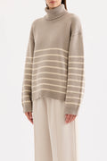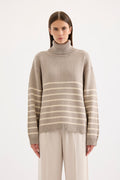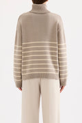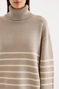 The Venus Turtleneck is made from a cotton blend yarn with a soft hand feel. The silhouette is relaxed with a dropped shoulder, and length finishing below the hips. Features include fold over turtleneck, placement stripe design, ribbed collar, cuff...