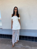 The Vera Off Shoulder Mini Dress captures the essence of summer elegance. Crafted from a lightweight linen-viscose blend, this mini features a sculpted silhouette with gentle ruching. Perfect for long lunches and golden hour moments.